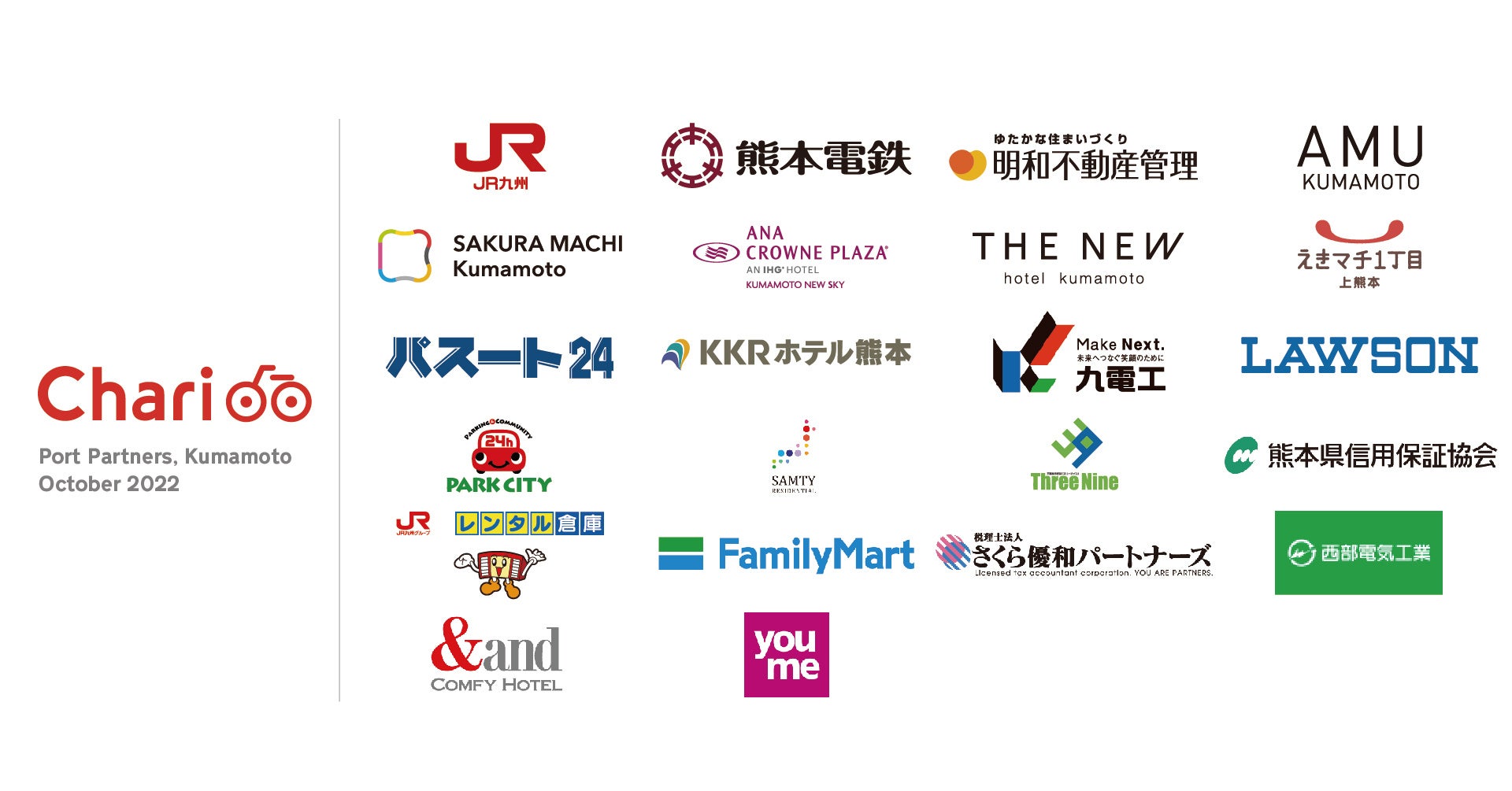 今般のエリア拡大に合わせ、公園を始めとした公共用地や、地域の皆さまの日常の移動の起点となるスーパーやコンビニエンスストアなど、熊本市、地元企業、既にご協力を頂いているパートナーの皆さまから新たにポート展開のご協力いただきました。