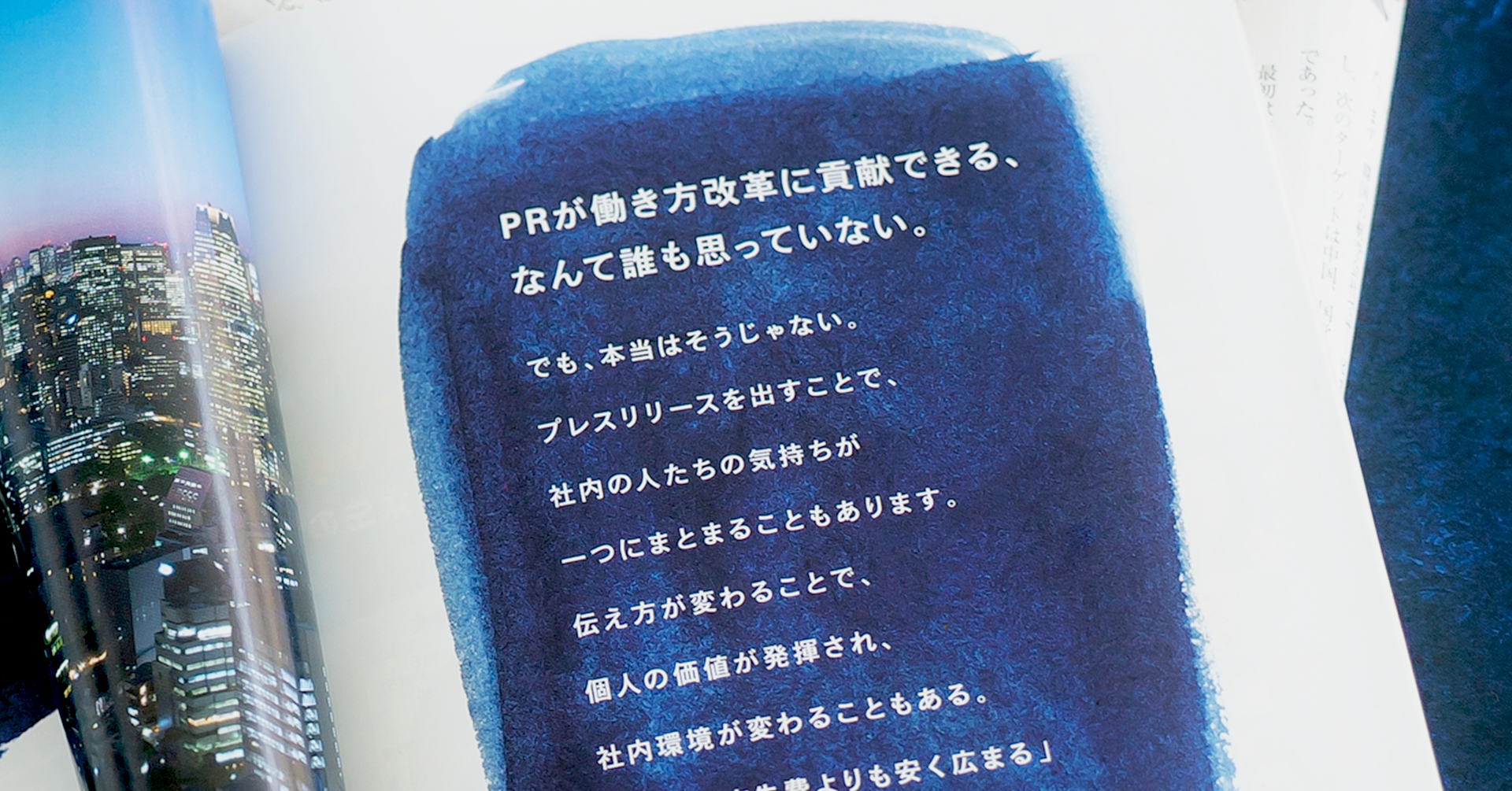 プレスリリースを出すことで、一緒に働く人たちの気持ちが一つにまとまることがあります。誰かの行動を公表するプレスリリースが、遠く離れた故郷の家族や友人へ届き、その人が元気で頑張っていると伝わることがあります。次の人たちに同じ過ちを犯させないようにと、大失敗したプロジェクトをあえて公表し、その勇気が称えられることがあります。会社というものは一人ひとりの社員が活躍するための舞台であって、誰もが主役になれるのが会社です。世の中を動かしているのは、一人ひとりの行動力だと、すべての人が実感できるように、PRの力で実現したいと思っています。
