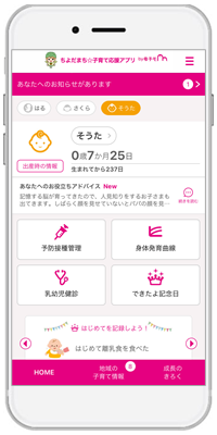 スマートフォン・タブレット端末・パソコンなどを活用することによって、お子さんの成長記録や予防接種の予定日などの情報を確認することが可能となります。その他にも、役立つ情報を提供してまいりたいと思います。