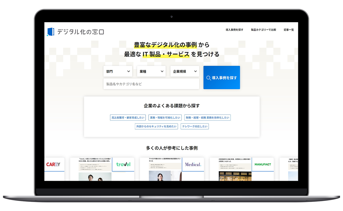 多くのIT製品やサービスが展開される中、情報を選び出すだけでも時間的なロスが発生します。『デジタル化の窓口』では、IT製品の特長を解説、デジタル化したい分野の検索、そしてユーザー企業が自社の課題を解決した導入事例を豊富に掲載することにより、企業の課題をより早く解決でき最適なIT製品やサービスを見つけることが可能です。