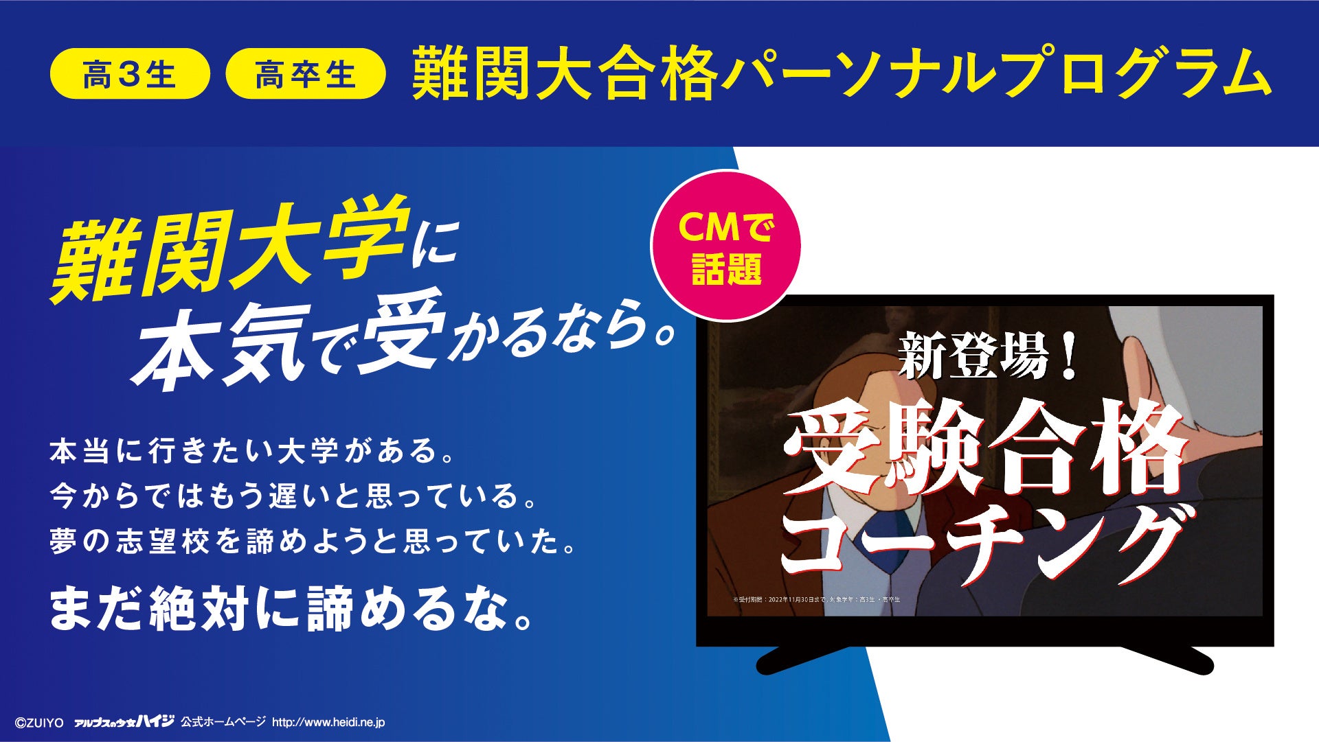 2022年9月20日(火)より新CMが放映開始しました。「高校受験も、大学受験も、トライ」をメインコピーとした本CMでは、新サービス「難関大合格パーソナルプログラム」の魅力を大きく取り上げた注目の内容となっております。ぜひご覧ください。