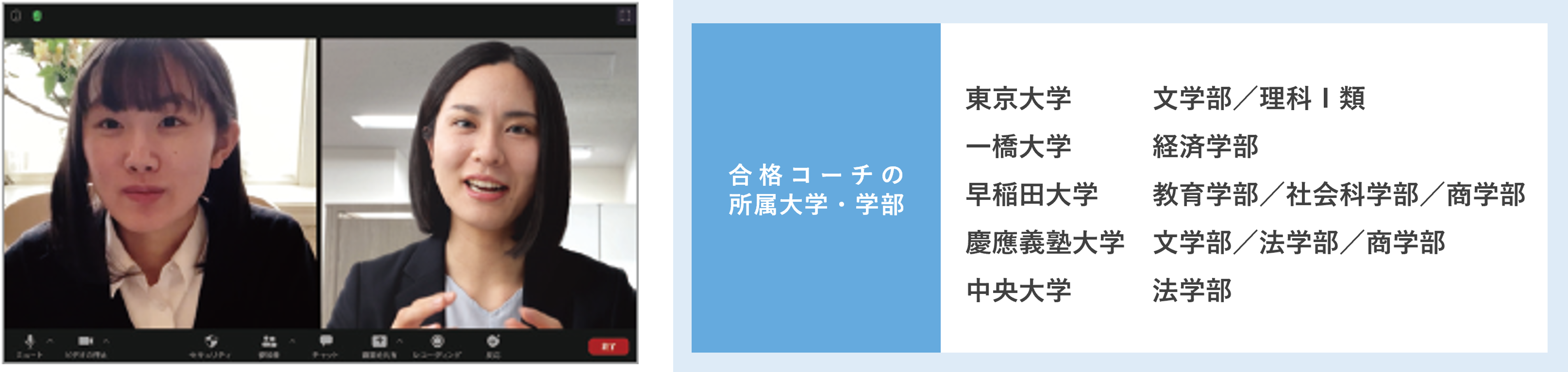 - ポイント② コーチが徹底伴走 現役難関大生の「合格コーチ」が“やり遂げる”まで学習を管理する