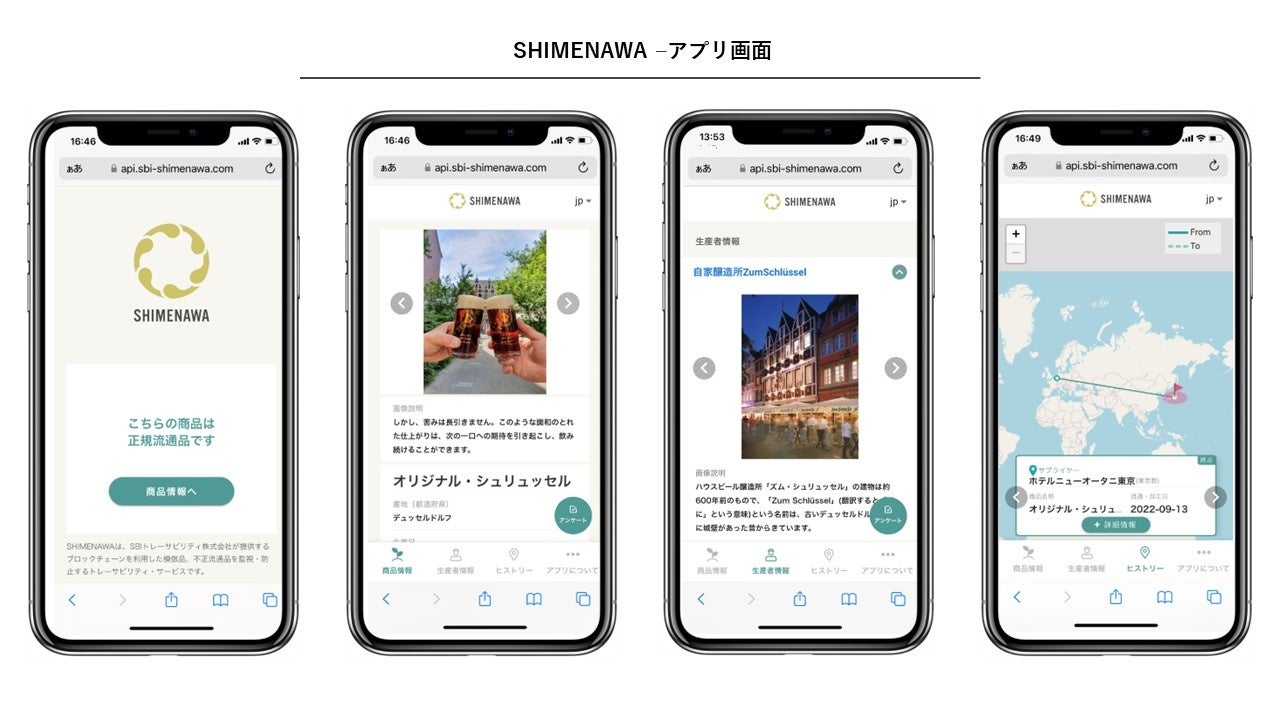 この交流会ではビール樽の開栓と主催者、在日ドイツ大使館、千葉県およびアルトビール醸造所の代表者による乾杯の唱和で始まるのが恒例となっております。交流会で提供されたアルトビールは、自家製造所ズム・シュリュッセルにて手作業で作っている上面発酵ビールです。2012年と2014年に世界一のアルトビールに選ばれて、ヨーロピアンビールスターアワードの金メダルを獲得いたしました。このビール樽の下に設置してあるQRコードを読み込むと当社が開発したSHIMENAWAのWEBアプリケーションがブラウザ上で立ち上がり、デュッセルドルフでのビール造りにかける工程や商品情報をストーリーとして表示されます。このように消費者がQRコードを読み取ることで、ブロックチェーン上に記録された生産地の魅力や、生産から輸送まで一貫した供給体制のトレーサビリティ情報を確認できる仕組みは消費者に安心感・満足感を提供することができます。