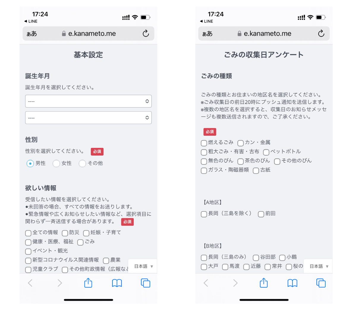 また同月より、ごみの定期配信を開始し、地域ごとの受信設定をした住民に対し、自動でLINEからメッセージ配信する機能の提供を開始いたしました。