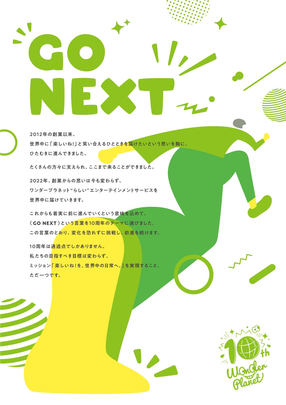 GO NEXT 〉という言葉を10周年のテーマに選びました。