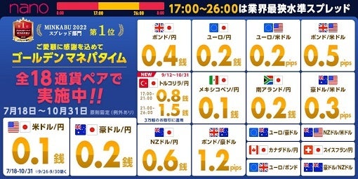 - 【nano】17時~26時は業界最狭水準スプレッドでお取引のチャンス!