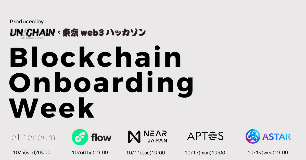 Blockchain Onboarding Weekは東京web3ハッカソン( https://tokyo.akindo.io/ )を主催するtrevaryと、web3エンジニアコミュニティ「UNCHAIN( https://www.unchain.tech/ )」を運営するshiftbaseによる、web3を学ぶエンジニアのための約2週間に及ぶオンライン勉強会プログラムです。