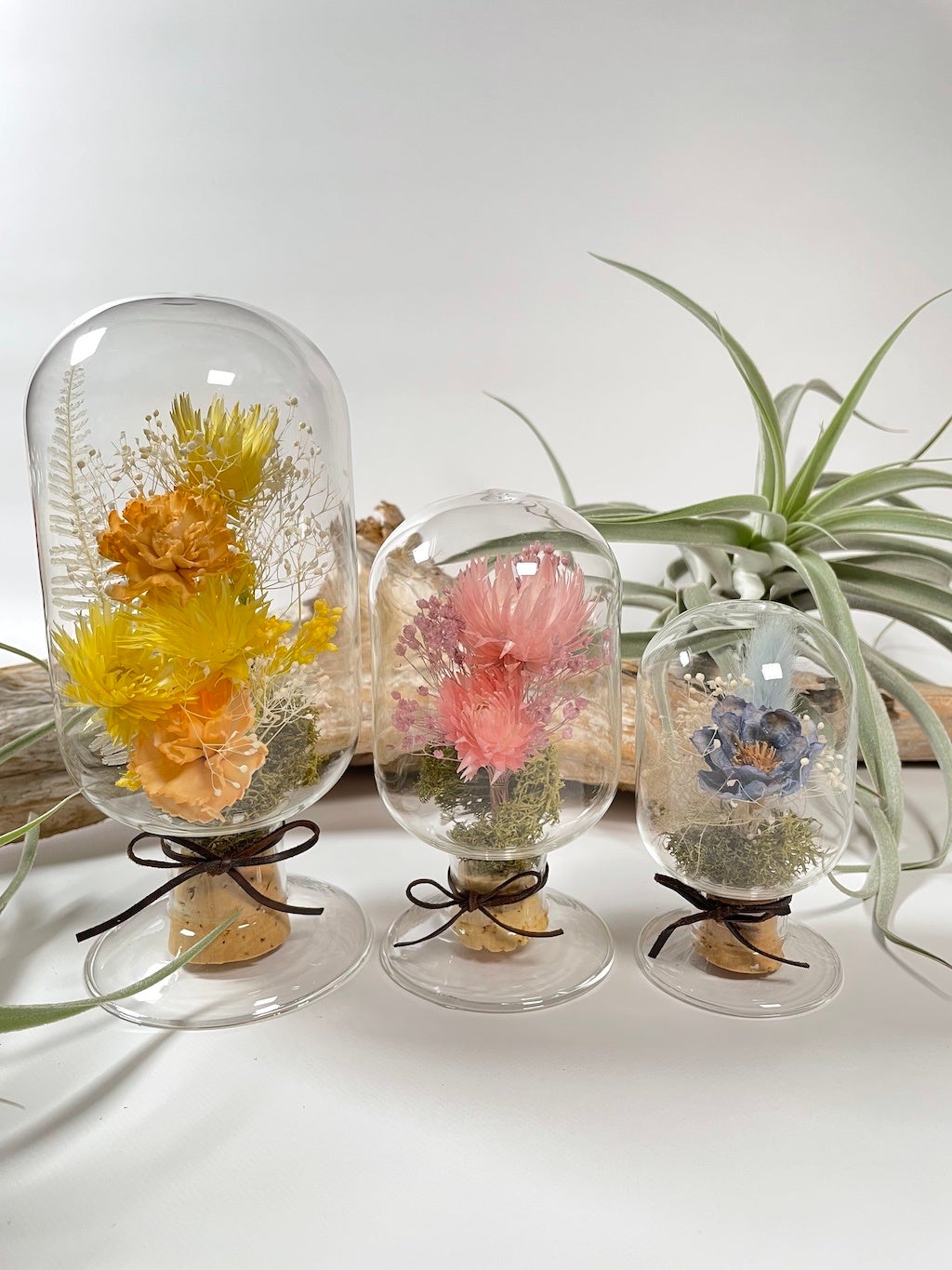 中のお花はプリザーブドフラワーを使用しているので、ながく楽しめますが、