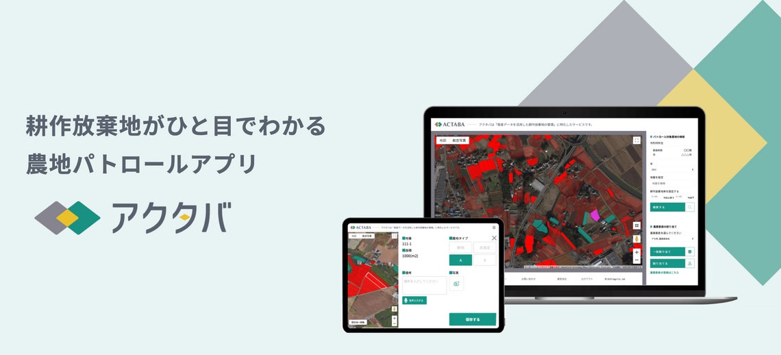 各市町村に設置されている農業委員会事務局では、毎年、農地法に基づき、全ての農地の利用状況を確認するため紙の地図を利用して農地パトロール調査を実施している。当社が開発した「アクタバ」というサービスを用いて、AIが人工衛星画像から農地の利用状況を診断し、調査業務負担の課題解決を実現。