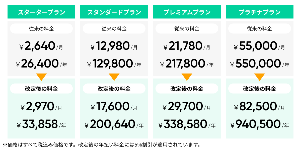 ※既に有料プランをご利用中のお客様については、料金改定日以降最初に到来する契約更新日から改定後の料金が適用されます。