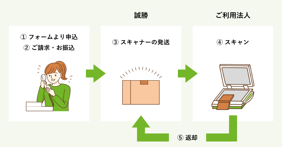 累計5,000社以上の法人資料のスキャン代行実績からスキャナーの設定・使用方法・様々な問題の対処法も知り尽くした誠勝だからこそ万が一の故障時やトラブルにも迅速に対応が可能です。