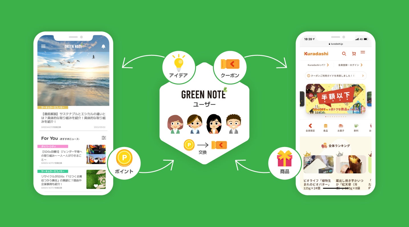 SDGs/サステナビリティ専門情報アプリ「GREEN NOTE」|2つの機能「プロジェクト」 「ポイント交換」を本格ローンチ