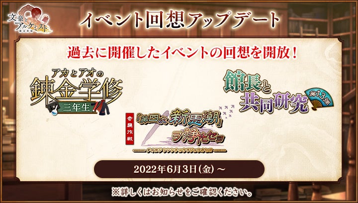 過去に開催したイベントの回想を開放いたしました。今回のアップデートでは、以下3つのイベント回想が図鑑よりいつでも確認できます。