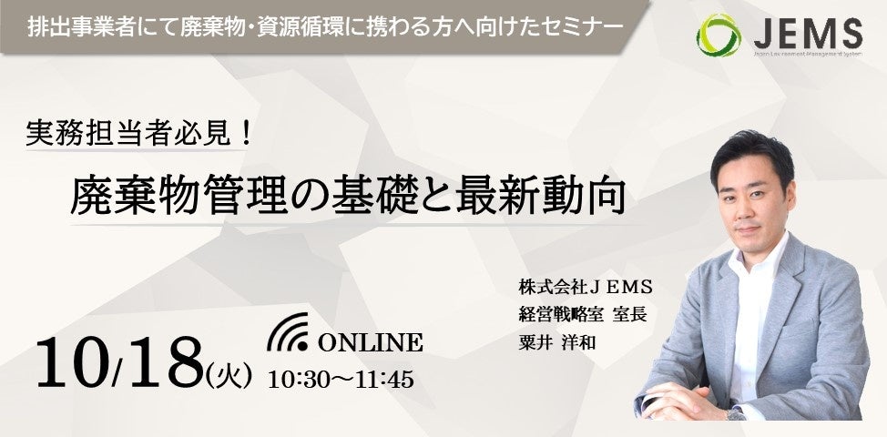 この度、「廃棄物管理の基礎と最新動向」をテーマとした、無料オンラインセミナーを開催します。