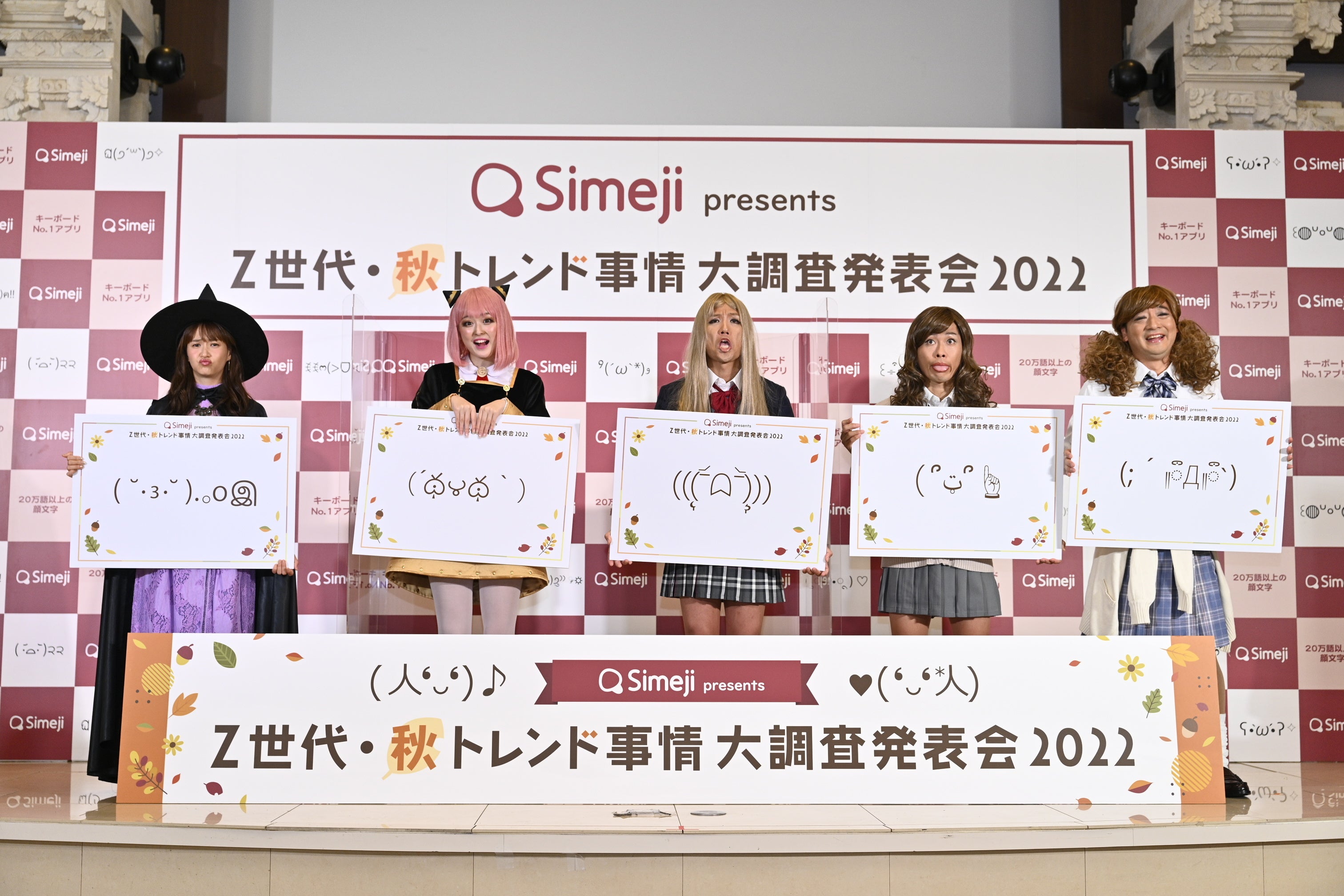 ゆうちゃみさん「Simejiは小学校2年生から使っていて今回呼んでいただいて最高です!」、藤本さん「大人世代としてZ世代のランキングを見ていると”遠くないな”という気持ちにもなりました!私もSimejiを子どもと楽しみたいです」、ジャングルポケットの3名からは、おたけさん「40代になりますけど、こういうZ世代の情報を常に吸収して気持ちだけは若くいたいと思います」、太田さん「若い世代に刺さることも発信していかなきゃなと思いました!この格好(平成ギャルの仮装)で宣材写真を撮っていこうかな」、斉藤さん「今日の一日を通して、Z世代の知らなかったことを知れたことが素晴らしかったですし、そんなに変わらない部分もあってお互い歩み寄れたら…」とのコメントに太田さんより「長くてうすいコメントが一番だめ!」とつっこみが。最後にみなさん、「ありがとうございました!」と笑顔いっぱいで締めくくり、今回の笑い溢れる『Simeji presents Z世代・秋トレンド事情大調査発表会 2022』 が終了いたしました。