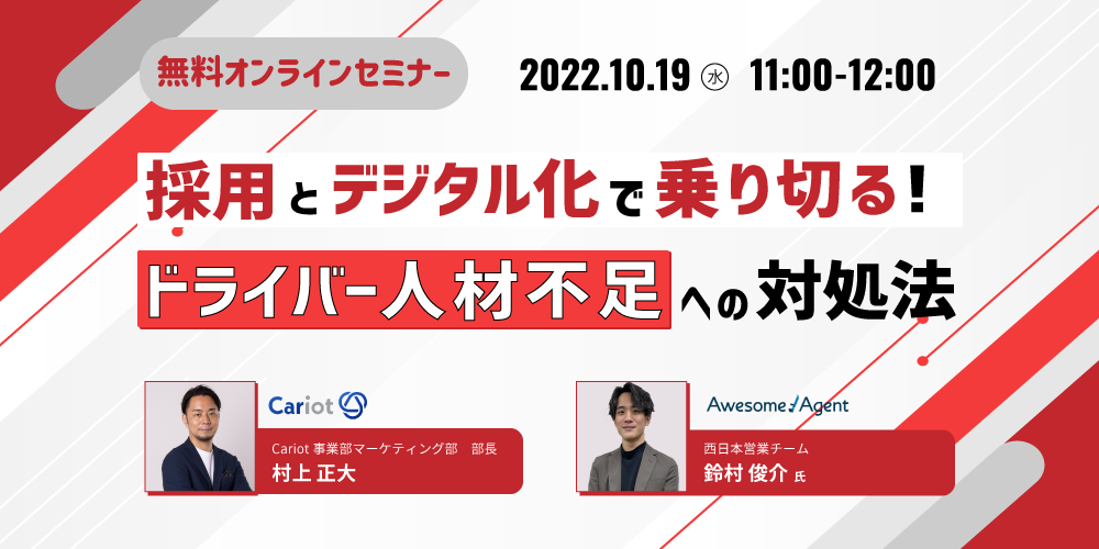 本セミナーでは、株式会社オーサムエージェントからは「ドライバー採用の最新トレンド」を実際の企業事例とともにご紹介いたします。