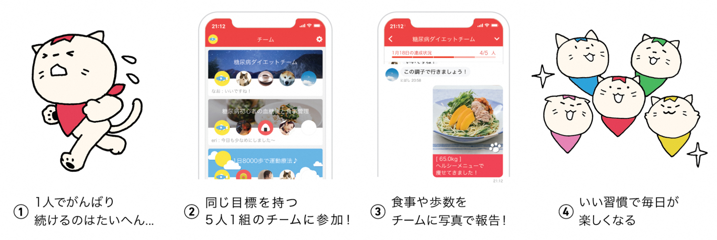 ・5人で励まし合いながら楽しく続けるデジタルピアサポートアプリ
