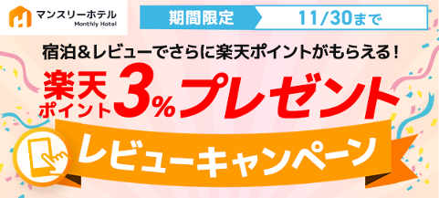 【プレゼントキャンペーン内容】 宿泊料金の3%を楽天ポイントで還元