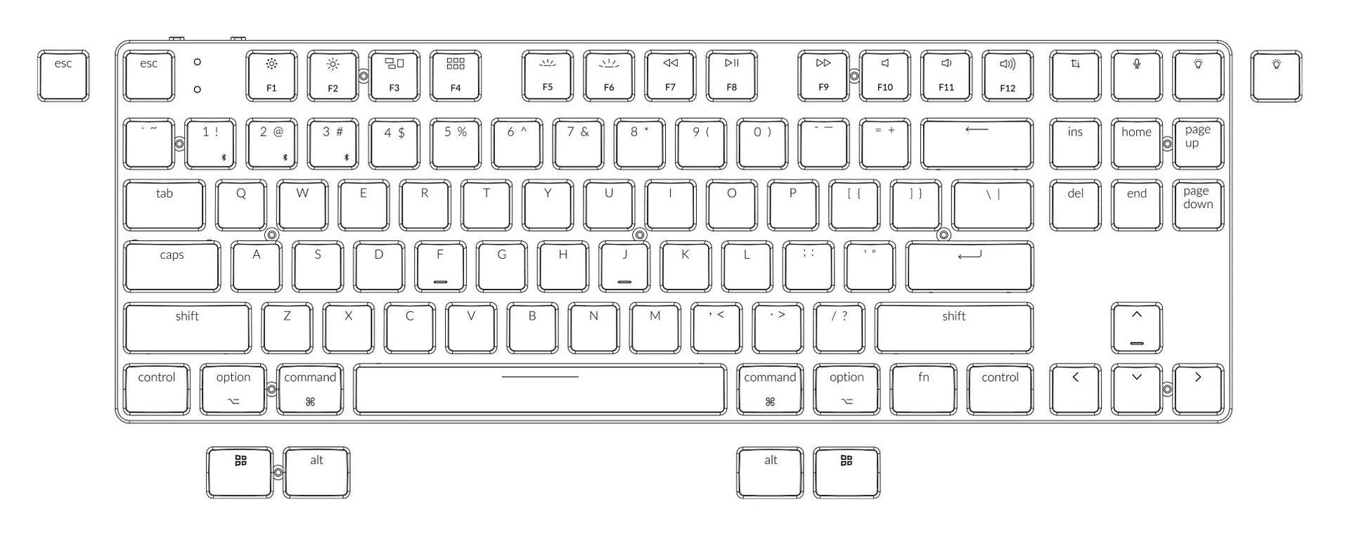 Mac OSとWindowsの両方に対応しています。Keychronは、Mac愛好家のためにMacマルチメディアキーレイアウトを搭載した市場では数少ない製品です(Windowsをお使いの方は付属のWindows用キーキャップを一部交換してお使い下さい)。