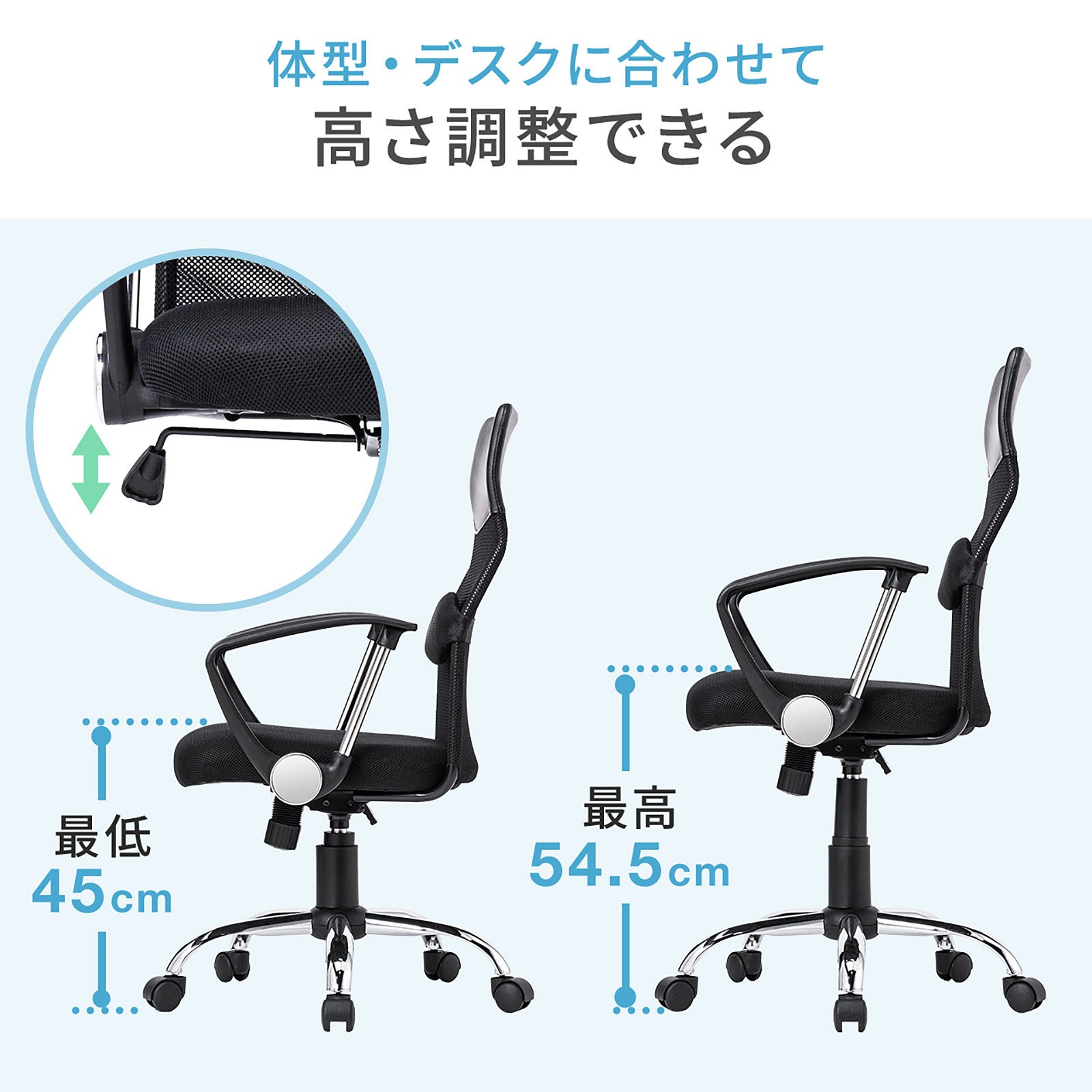 メッシュチェア 二重構造メッシュ ミドルバック ロッキング 肘付き ランバーサポート キャスター