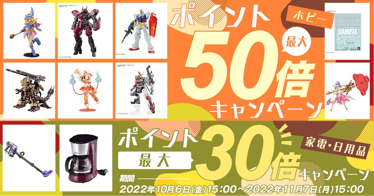 ・ホビー商品:対象商品を購入すると通常1%のポイント還元率が49%付与され最大で50%の還元になります。