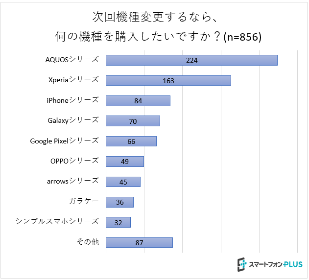 次いで「Xperiaシリーズ」、「iPhoneシリーズ」、「Galaxyシリーズ」、「Google Pixelシリーズ」の順になっています。