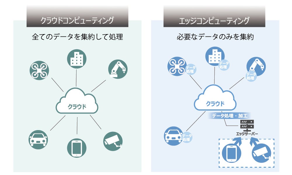 これらの問題を解決する最先端技術のひとつが「エッジコンピューティング」です。「エッジコンピューティング」は、データ処理をクラウド上でするのではなく、データを取得したカメラなどの端末で行い、加工したデータのみをクラウドに送信する技術です。