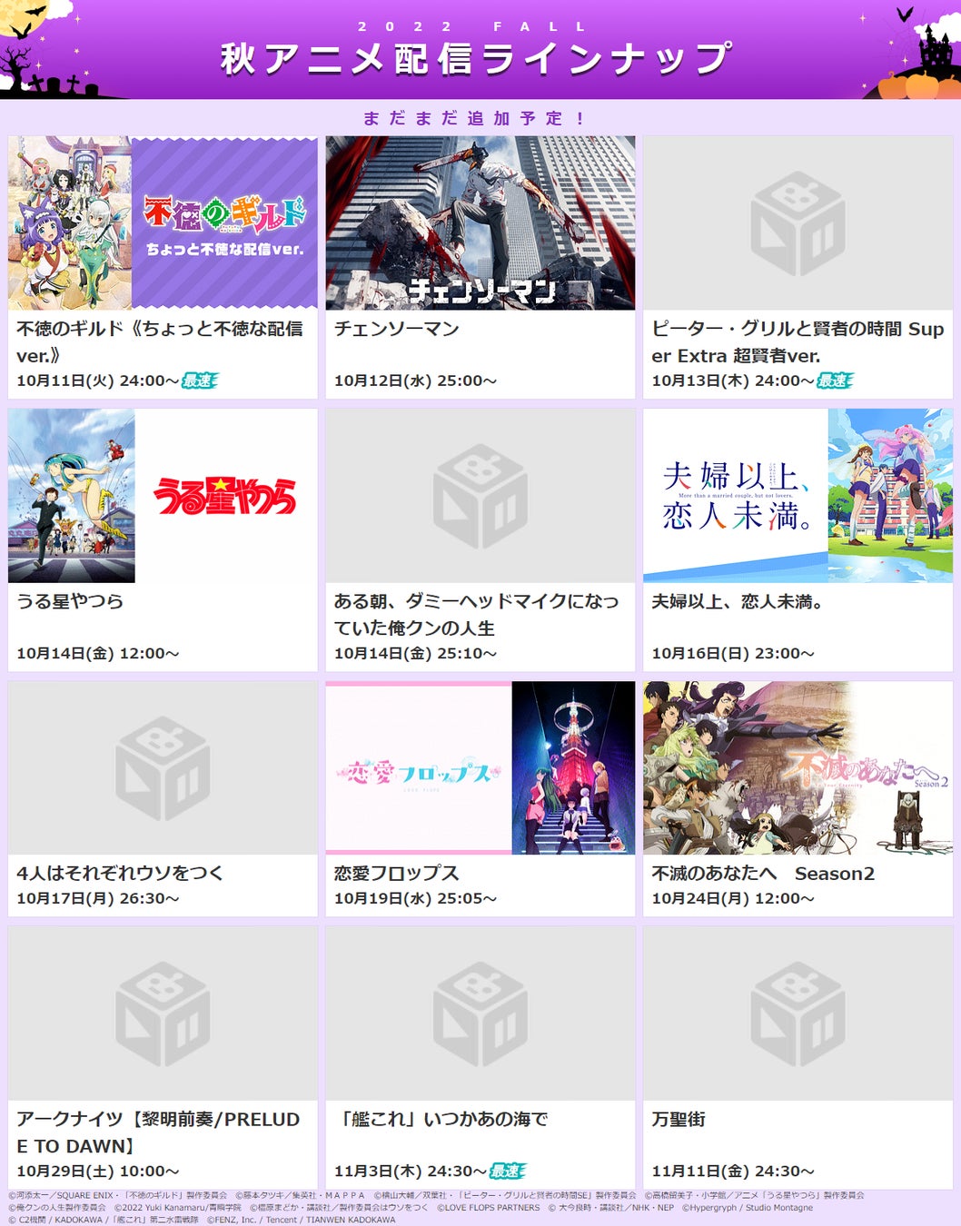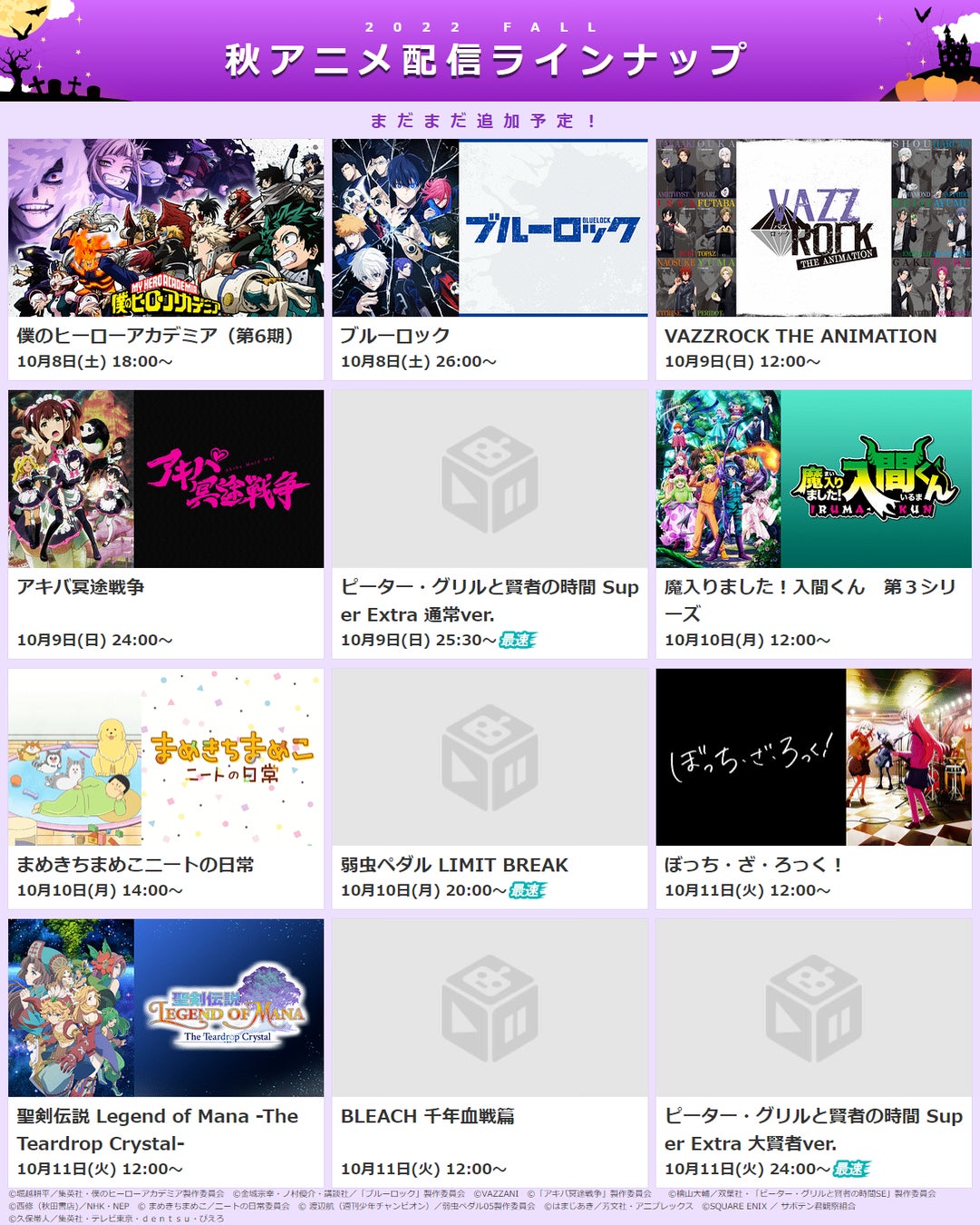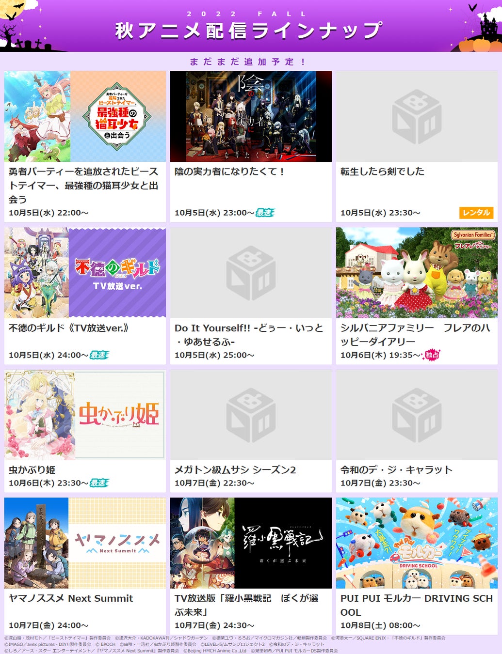 ※詳細は次項目「■2022秋アニメ・配信決定一覧」 及び ラインナップページをご確認ください