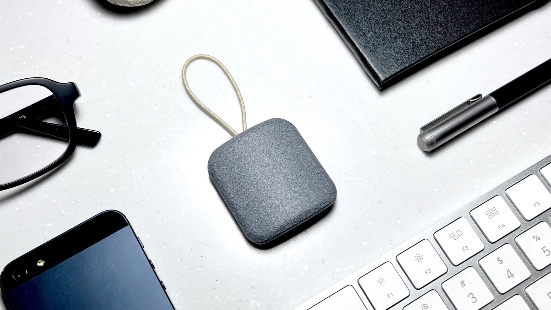 ポケットに入れてもかさばらない小石サイズ。重さわずか20g。ボタン電池、省電力でずっと使える。