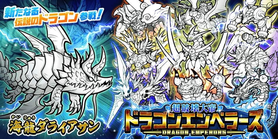 - 期間限定レアガチャ「超破壊大帝ドラゴンエンペラーズ」に新キャラクター「海龍ダライアサン」が登場!