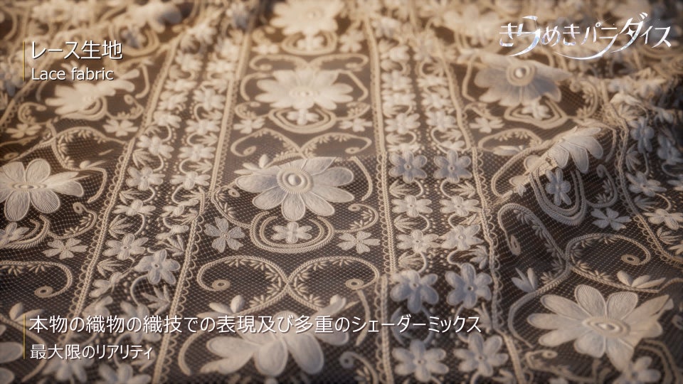 『きらめきパラダイス』では、次世代3D技術を用いて、各種の服装生地とアクセサリーの細部まで再現しただけではなく、ズームインした画面から血管までも見えるくらい真の肌の質感と透明感を最大限に再現している。生地、素材、顔、肌、『きらめきパラダイス』は全てのディテールの極めたリアリティを実現した。
