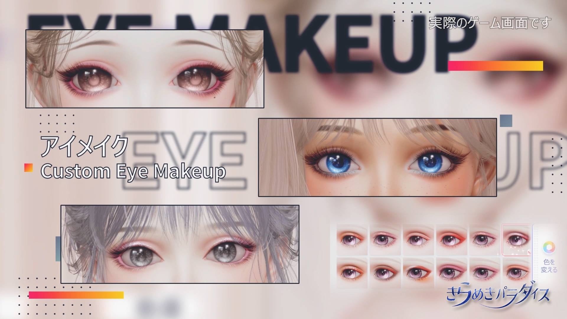 超高自由度を誇る次世代ガールズドリームRPGとして、『きらめきパラダイス』は非常に幅広いカスタマイズができる。身長、ボディスタイル、髪型、髪色、肌色、メイク、さらに数十パーツ以上調整できる顔キャラメイク、全てはプレイヤーの美感覚次第。全てのプレイヤーは必ず自分の好みに一致するキャラができる。その唯一無二の「自分」をめぐって、数多くのファッションスタイルを持つ服装が自由にコーデでき、夢のマイホームインテリアも自分できめられる。憧れの姿で憧れの人生がキラパラでできる。美に関わる全ては、あなた次第となる。