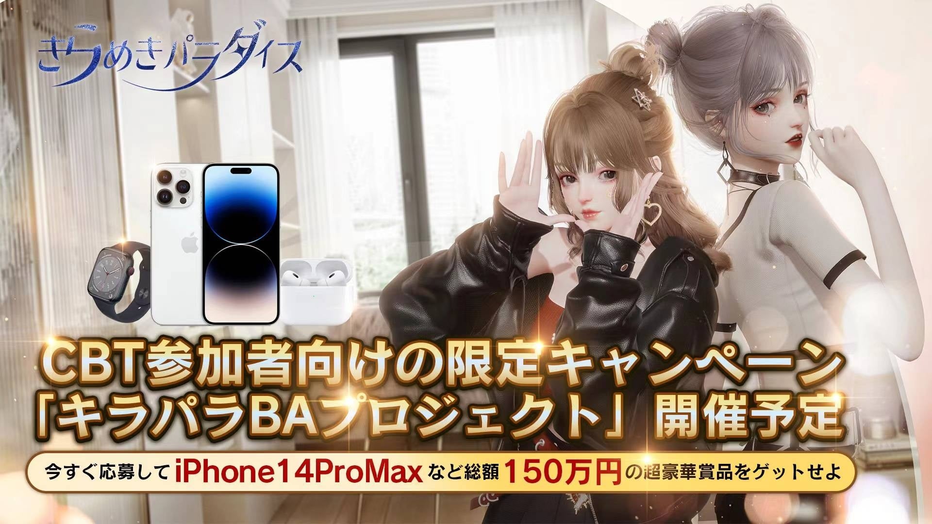 今回のCBT先行体験期間内、参加者全員はTwitter、Instagram、YouTubeなどでゲーム内容やプレイ感想などをシェアしていただくと、iPhone14ProMax、AirPodsPro2、AppleWatchSeries8、JillStuartのメイク、Amazonギフト券など、総額150万円相当の超豪華賞品を抽選で当たる!