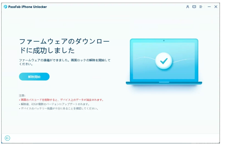 Step1: PassFab iPhone Unlockerをパソコンにダウンロードして起動し、「解除開始」をクリックします。