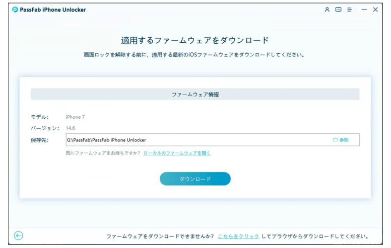Step3: 最新のファームウェアが自動で検出されるので、「ダウンロード」をクリックしてダウンロードします。