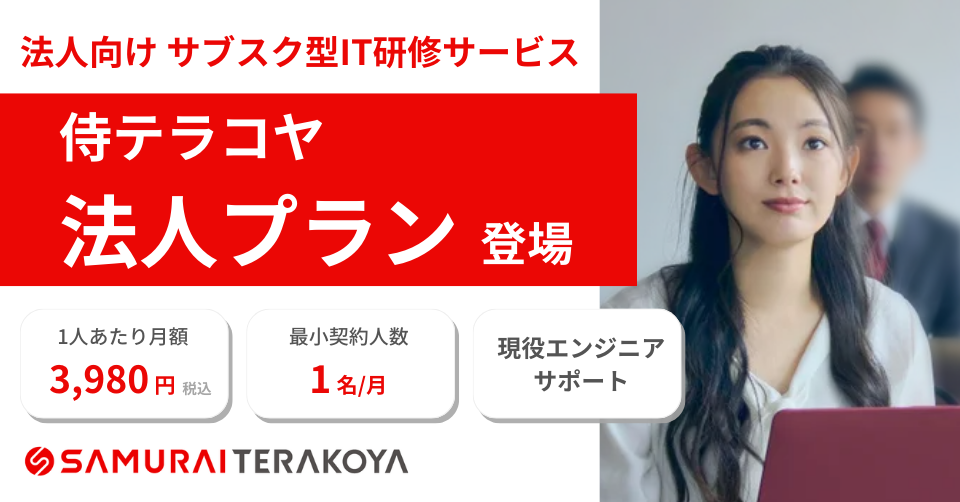 ■企業のIT課題を解消する、サブスク型研修サービス「侍テラコヤ 法人プラン」が登場