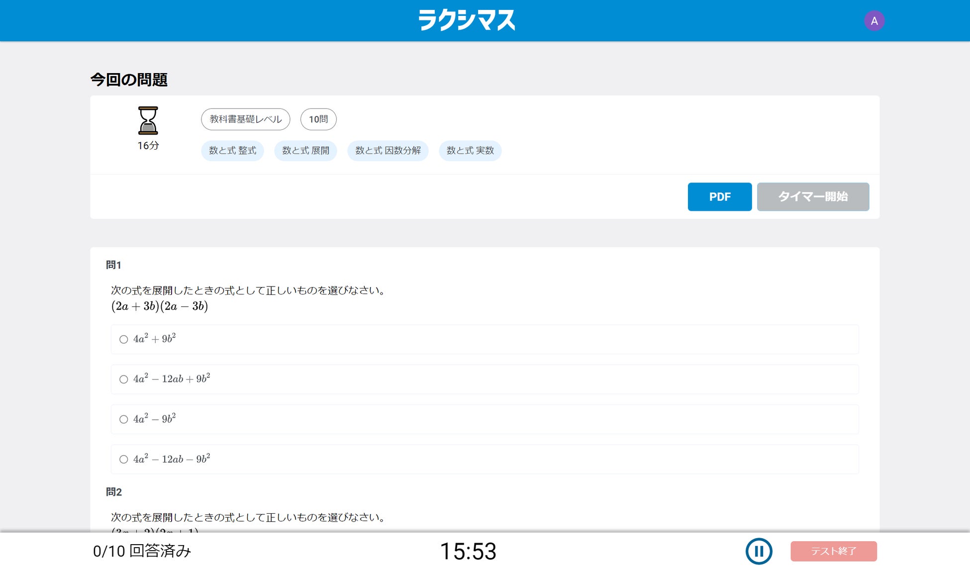 ラクシマスは、指定した単元から基本問題10問のセットを自動作成できる、高校生向けの数学学習サービスです。作成した問題セットは、その場でタイマー付きのテスト・採点・解説による見直しまで行えます。Googleのアカウントがあれば、誰でも無料で利用することができます。