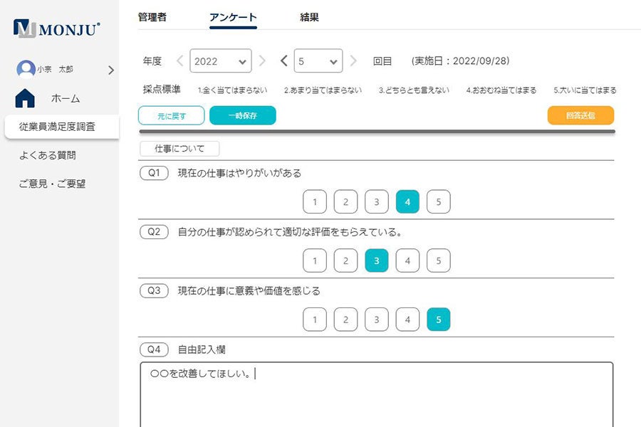 自由記入欄もあり、従業員の本音が見えるようになっており、経営側の人間が会社の状況を把握することができます。