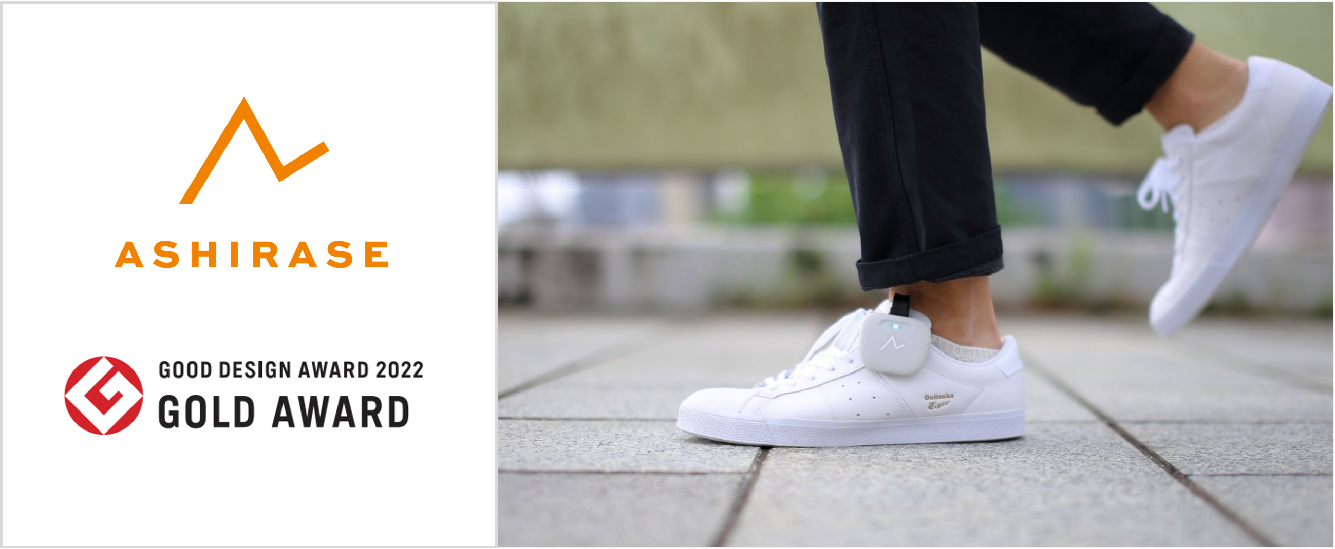 あしらせは、視覚障がい者向けの歩行ナビゲーションシステムです。靴に装着する振動インターフェースと、スマートフォンアプリによる音声入力や案内で構成されます。歩行者がより安全確認に集中できよう、ルート情報を足元から直感的に伝えることで、これまで苦労していたルート確認の作業の負担を減らしていきます。