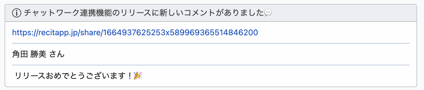 コメントとその返信の内容が、Chatwork上にリアルタイムで通知