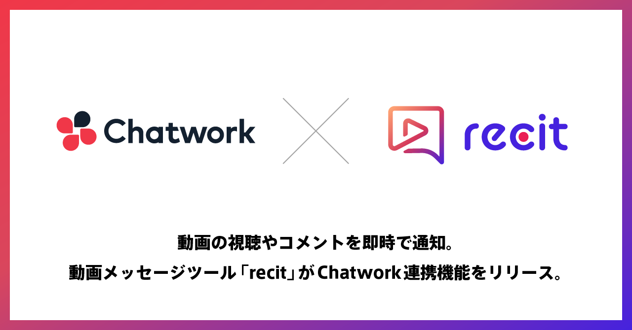 recitは社内のコミュニケーションの他に、リードナーチャリング、カスタマーサクセス・カスタマーサポートなど、顧客向けの活用シーンでもご好評いただいております。Chatwork連携はそうした活用シーンにおいても、よりrecitを便利にお使いいただけるアップデートです。