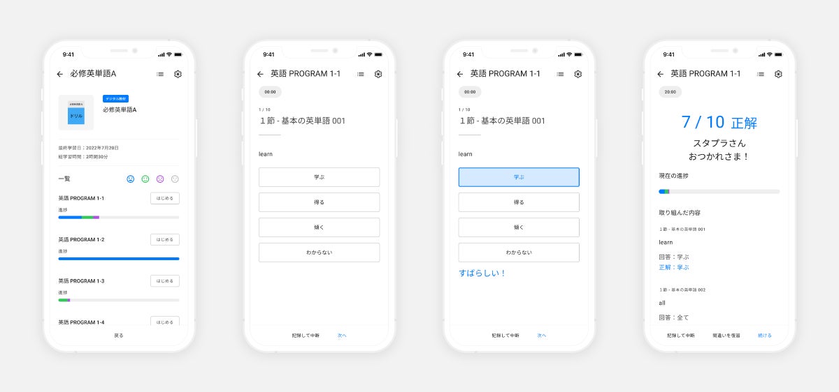 生徒一人ひとりの学びの個別最適化を目指す上で学習データの利活用は不可欠であり、スタディプラスは多くのデジタル教材会社と連携することで、新しい教育の仕組みづくりにチャレンジしています。