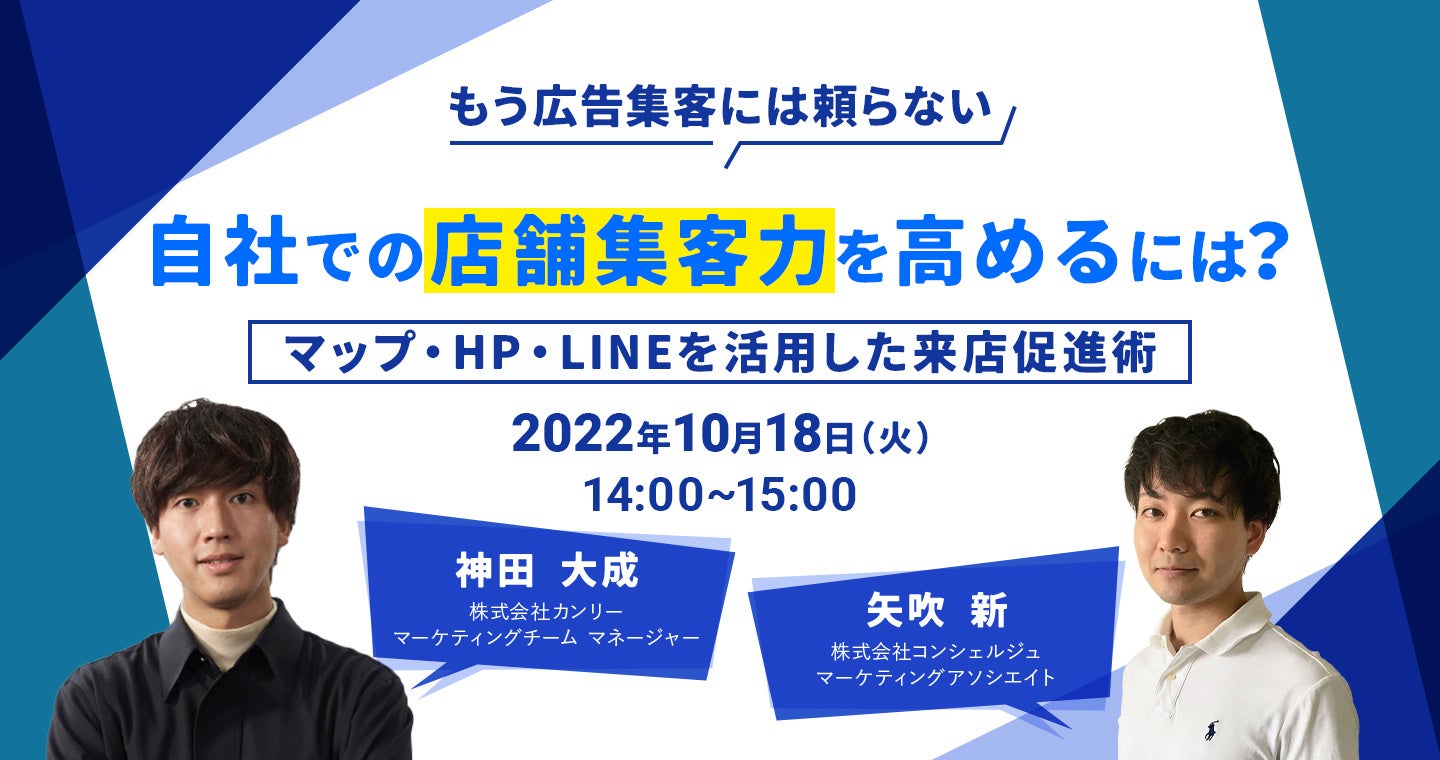 本ウェビナーでは、Google・HP・各SNSの一括管理サービス「Canly」を提供する株式会社カンリーと、LINEマーケティングツール「KUZEN-LINK」を提供する株式会社コンシェルジュが、Googleマップ・HP・LINEを活用した自社集客力向上の施策について成功事例を交えて解説。