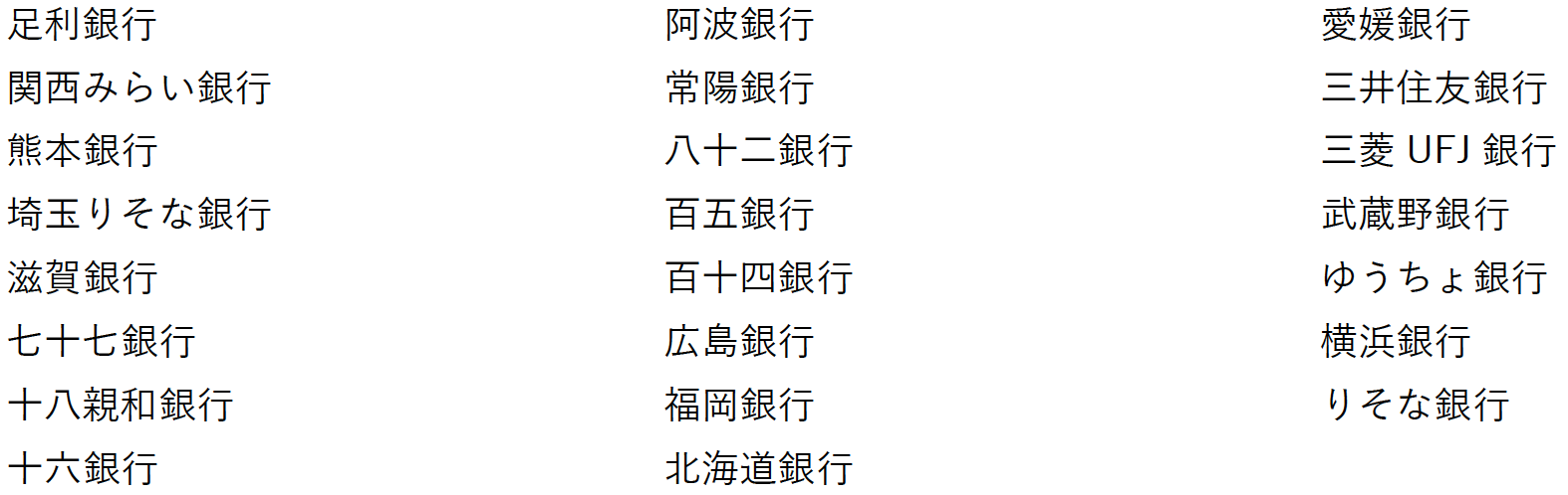 提携済みの金融機関一覧(2022年10月11日時点)