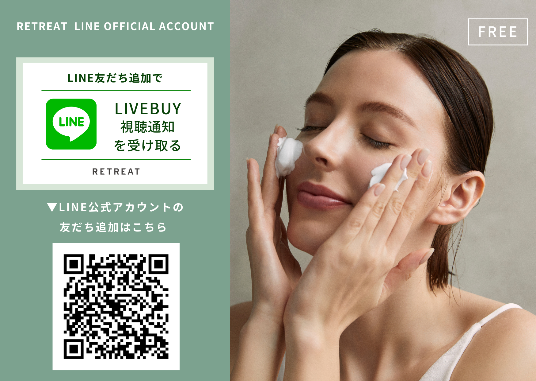 今回のライブコマース配信では、スタイリストの冨張愛さんをお迎えし「RETREAT」の魅力に迫る番組を配信します。視聴者の皆さまからの製品に関する質問、使い方や使用感などにもリアルタイムでお答え致します。また、「LIVEBUY(ライブバイ)」での配信を記念し、特別価格で商品を販売致します。