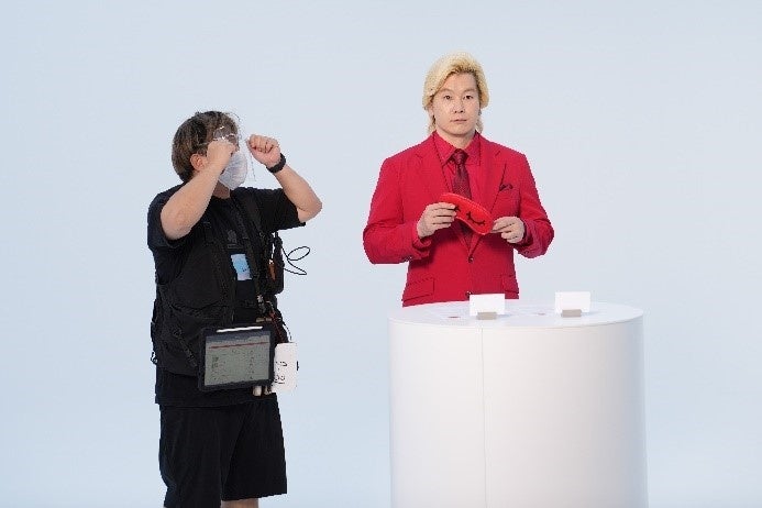 短いセリフで微妙に異なるニュアンスでの表現を求められた時も、すぐに演じ分ける柔軟な対応力を見せたカズレーザーさん。ニュアンスの違いを瞬時に解釈する頭の回転の速さと見事な演技力で、最後まで撮影はスムーズに進行し、予定より数時間も早く終えることができました。
