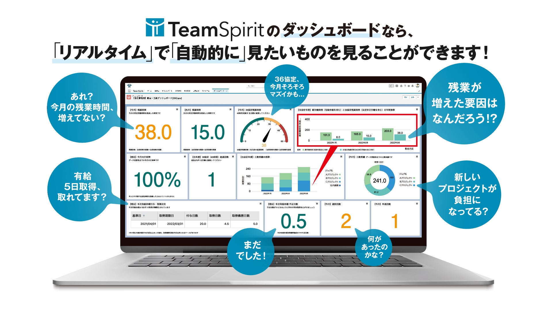一方、人的資本開示の実務においては、リスクマネジメント観点の開示項目にとどまらず、企業価値向上に資する開示項目の関連データを効率的に集積できるツールは日本では極めて数が少ないのが現状です。「TeamSpirit」の新たなソリューションでは、「労働時間データ」と「業務内容データ」の効率的な集積・分析・可視化を実現している点に大きな可能性を感じています。勤怠データと業務内容データを分析・可視化して1on1面談を実施するケースを想定すると、上長は部下に対して可視化されたダッシュボードのグラフを見ながら「価値向上」につながる業務に、より多くの時間を充てるよう部下に助言するようになると考えます。この点において、「TeamSpirit」の新たなソリューションは、マネジメントクオリティの向上に寄与し、その成果としての「生産性向上」につながるソリューションとなると確信しています。