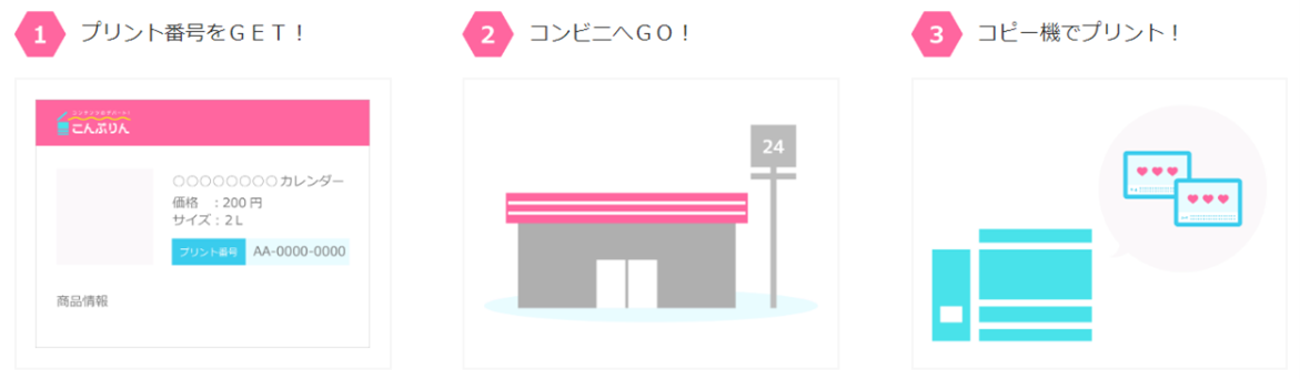 ① こんぷりんオフィシャルサイトで欲しいコンテンツを探し、プリント番号をGET。