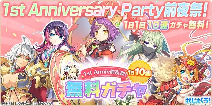 ▼【予告】1st Anniv.Party前夜祭!1日1回10連無料ガチャ開催!