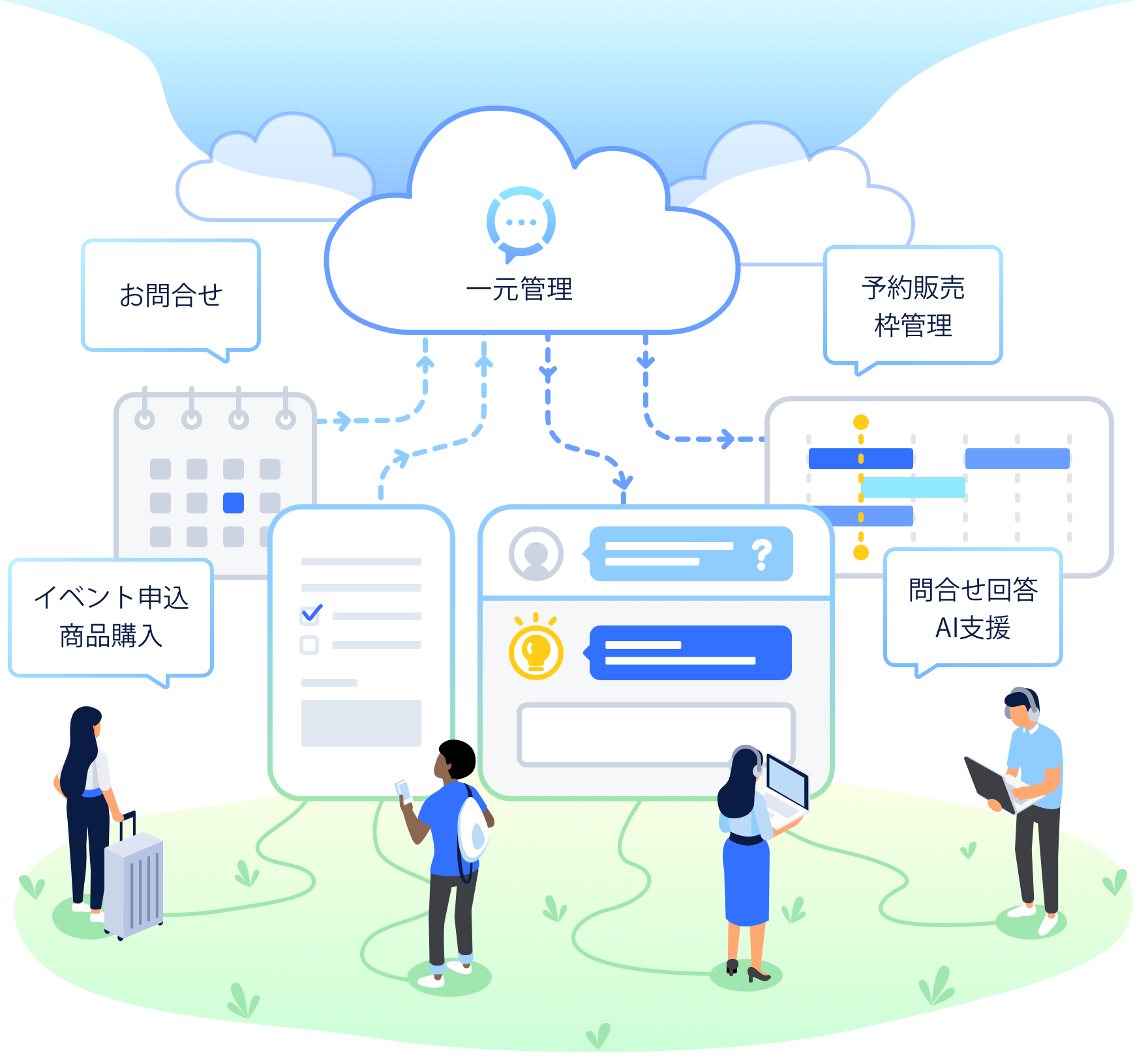 従来の問合せフォームをtalkappi INQUIRYに置き換えることで、問合せの⼀元管理が可能になり、⼀般的な問合せ受付だけでなく、プール、貸切⾵呂、おせち料理販売、イベント申込等各種予約にも対応できます。